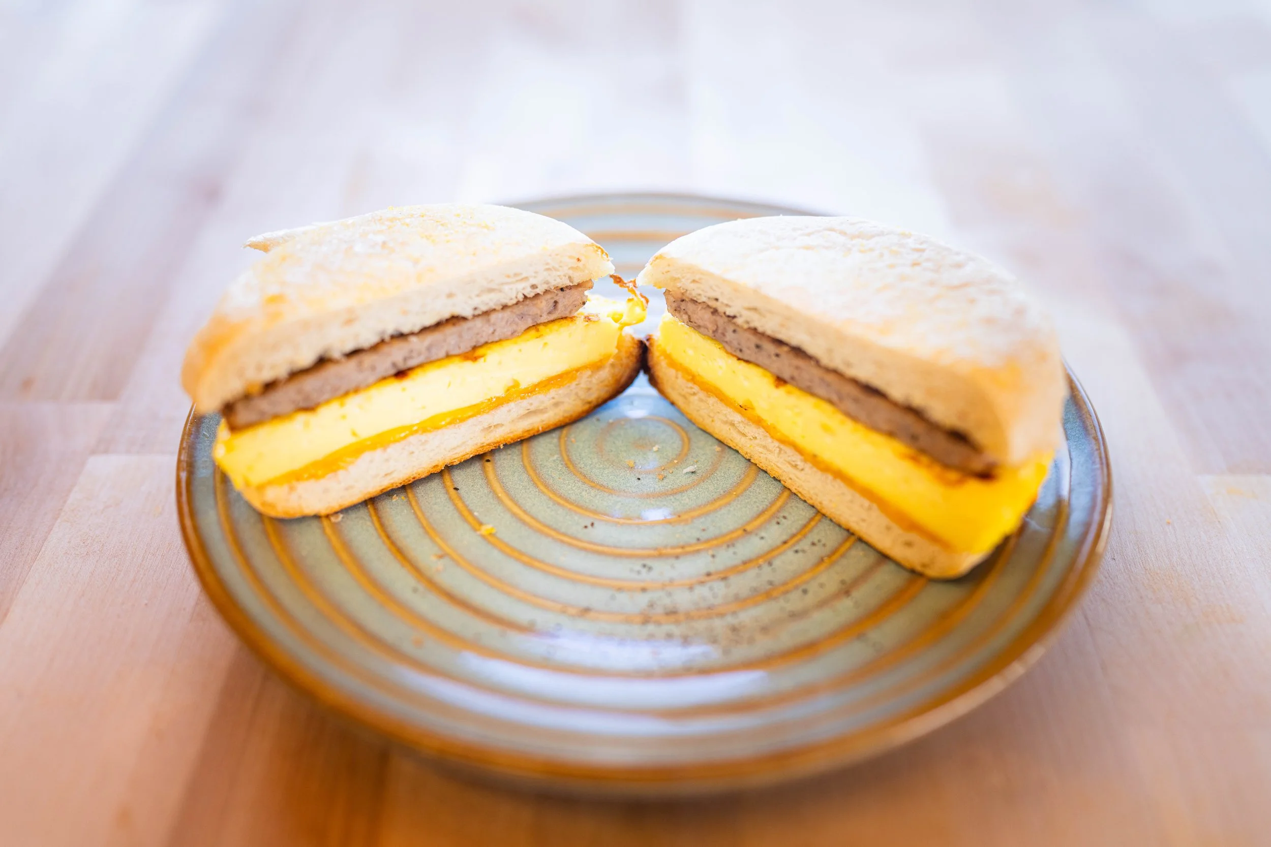 Bacon, eggs & gouda cheese on warm ciabatta bread